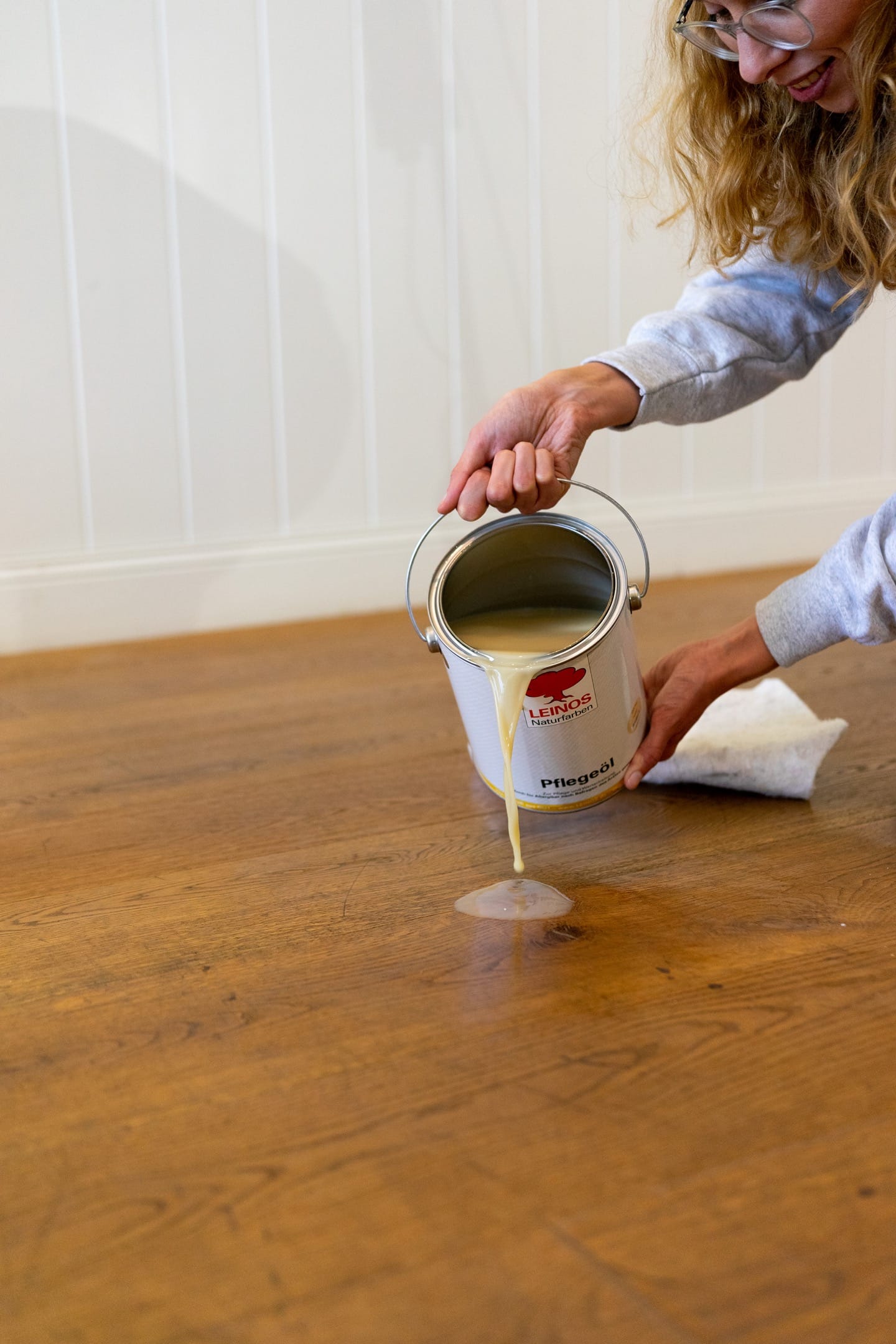 Der Untergrund sollte vorher gesaugt werden. Bei oberflächigen Verschmutzungen empfehlen wir vor der Ölwäsche eine nebelfeuchte Reinigung mit LEINOS Pflanzenseife, sowie die anschließende Neutralisierung des Bodens mit klarem Wasser.
