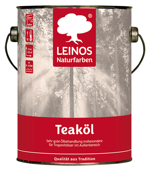 Die Verarbeitung ist wie gewohnt einfach und schnell erledigt. Das Öl hat ein tiefes Eindringvermögen ohne Schichtbildung und lässt das Holz nicht austrocknen. Bei der Verwendung von LEINOS Teaköl werden außerdem leichte, oberflächliche Verschmutzungen entfernt.