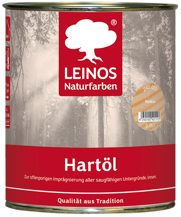 Mit unserem Hartöl haben Sie ein Produkt an der Hand, das Ihnen für Ihre saugfähigen Untergründe im Innenbereich wie Holz, Kork oder unglasierte Tonfliesen eine offenporige Imprägnierung bereitstellt, die vor allem auch in stark beanspruchten Bereichen genutzt werden kann. Die Strapazierfähigkeit kann mit einer Endbehandlung mit LEINOS Hartöl Spezial sogar noch wesentlich erhöht werden.