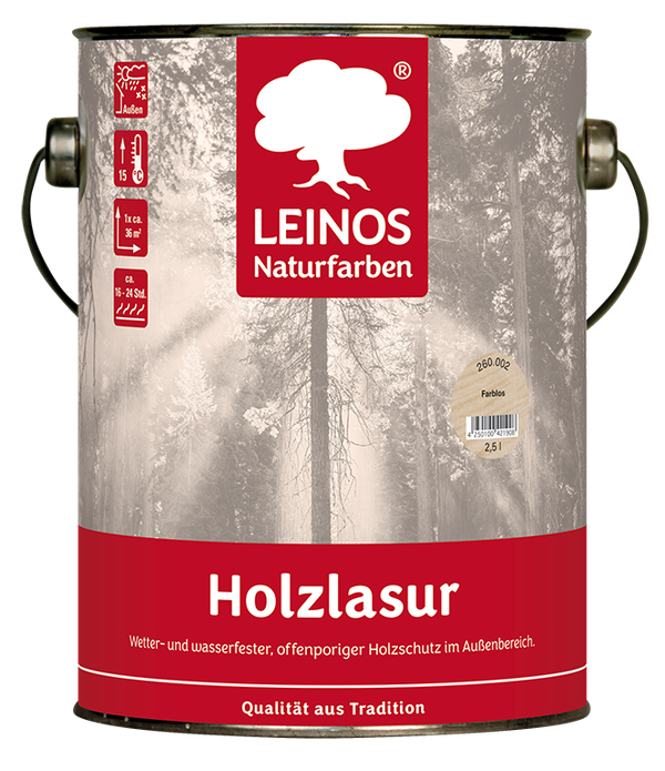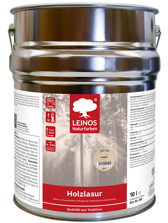 Auch bei diesem LEINOS Produkt haben Sie wieder die Qual der Wahl bei 10 verschiedenen Farbtönen. Sollten Ihnen diese Farben noch nicht ausreichen, dann haben wir mit unserem Holzlasur-Mix auch noch eine Mix-Variante im Angebot. So kann Ihnen maschinell anhand des NCS-Farbfächers auch Ihre Wunschfarbe abgetönt werden.