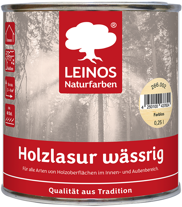 Holzlasur auf Wasserbasis zur dekorativen Farbgebung und zum Schutz vor Verschmutzungen und Witterungseinflüssen von Holzoberflächen im Innen- und Außenbereich. Besonders geeignet für Nadelhölzer aber auch für Laubholz- und Harthölzer zur dekorativen Farbgebung und zum Schutz vor Verschmutzungen und Witterungseinflüssen.
