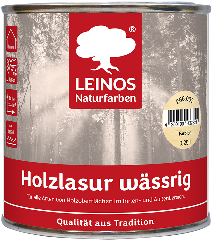 Holzlasur auf Wasserbasis zum Schutz und zur Dekoration von Holzoberflächen im Innen- und Außenbereich.